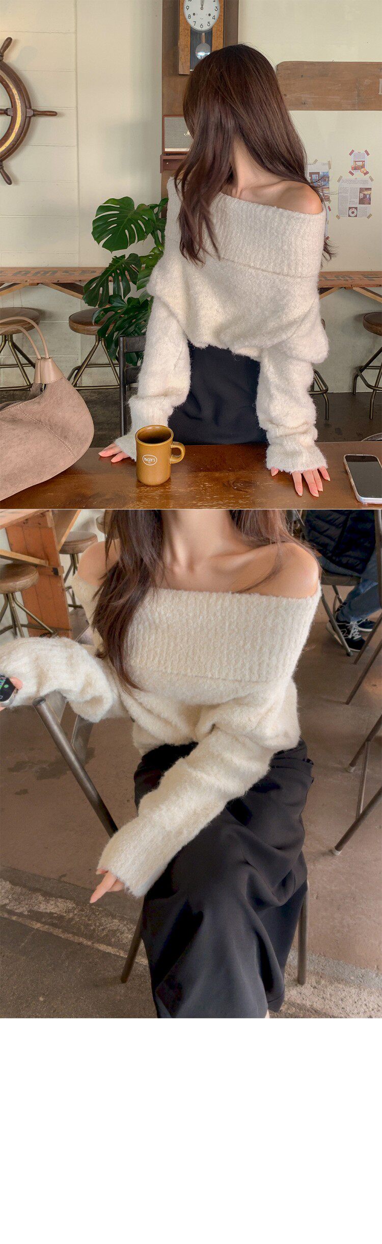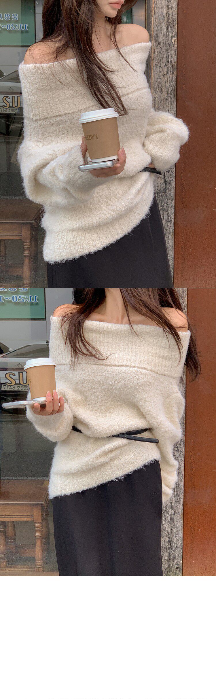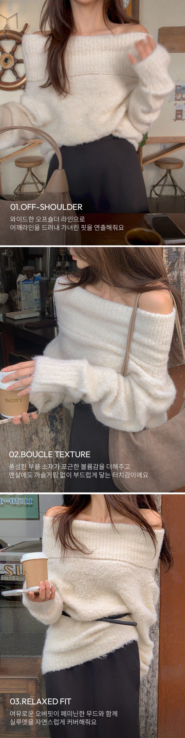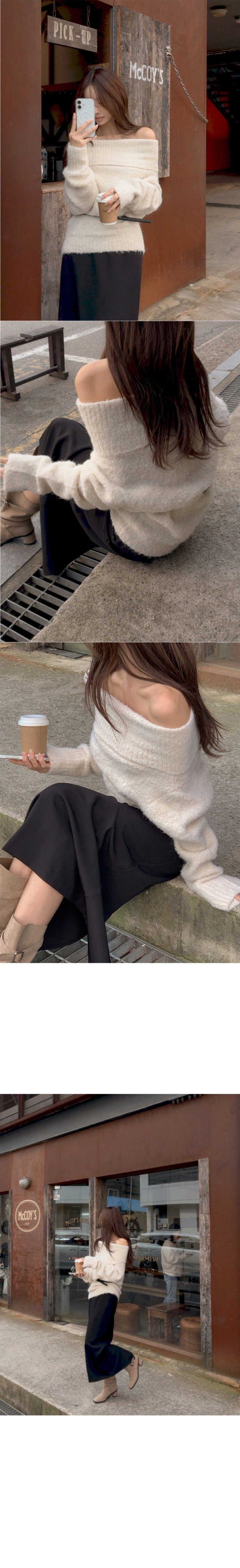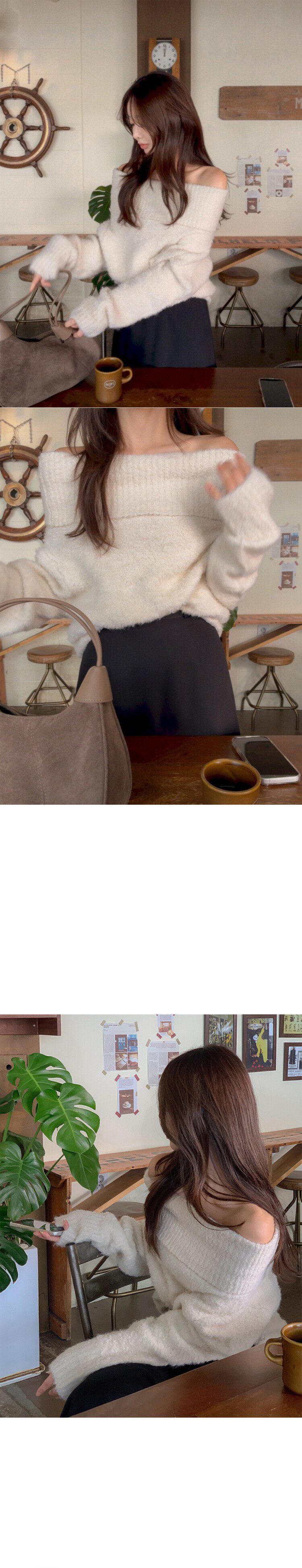 [무료배송/MADE]혼딘 울 오프숄더 니트